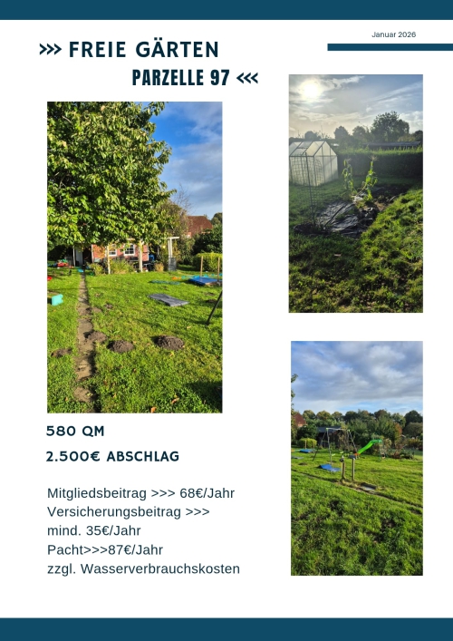 Im Kleingärtnerverein e.V. Heikendorf haben wir aktuell 4 freie Pachtgärten.